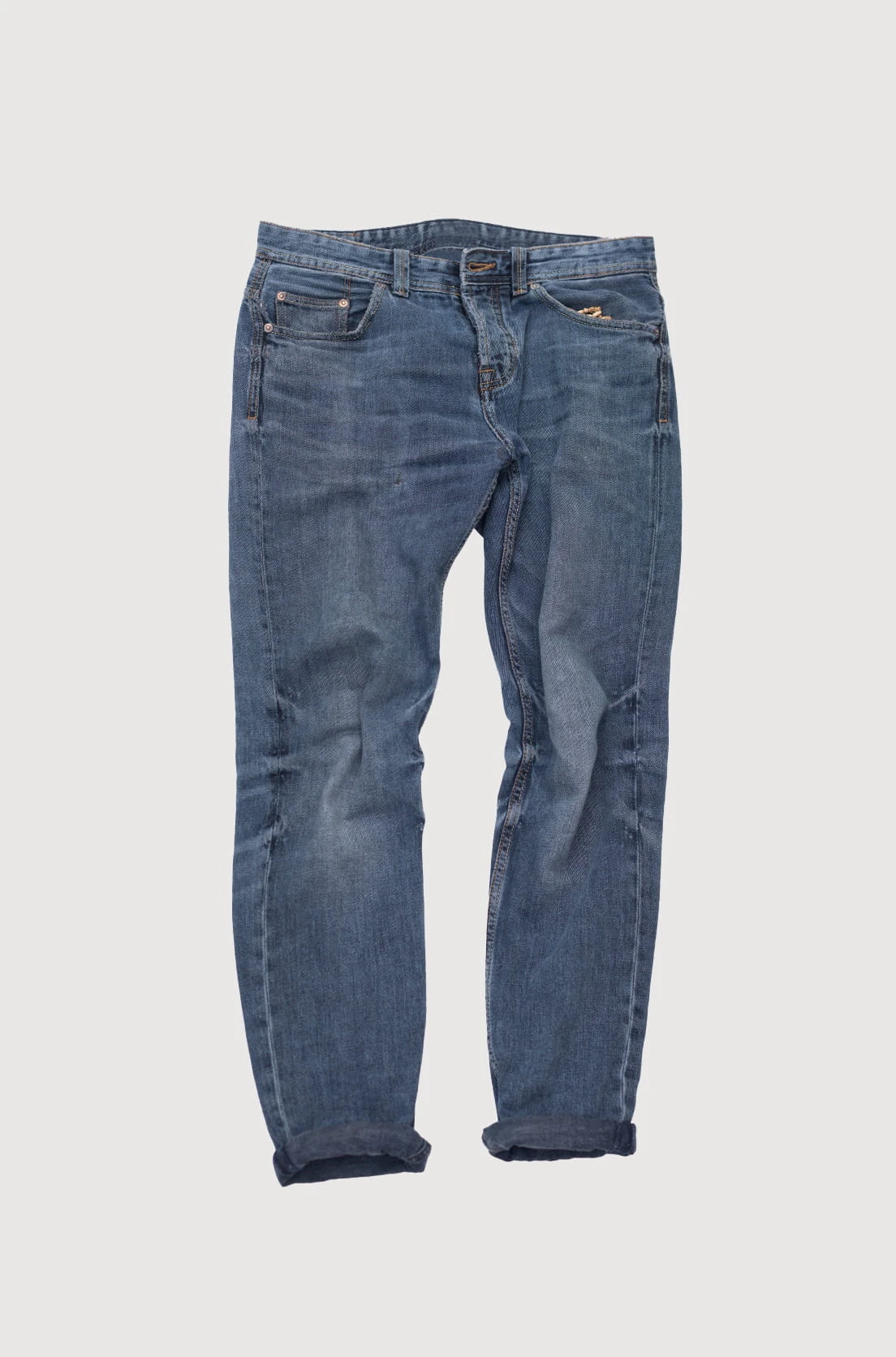 Jeansy męskie w zgaszonym granatowym kolorze to doskonały wybór, jeśli szukasz uniwersalnych spodni pasujących do wszystkiego. Przetarcia dodają im charakteru i lekko surowego wyglądu.
